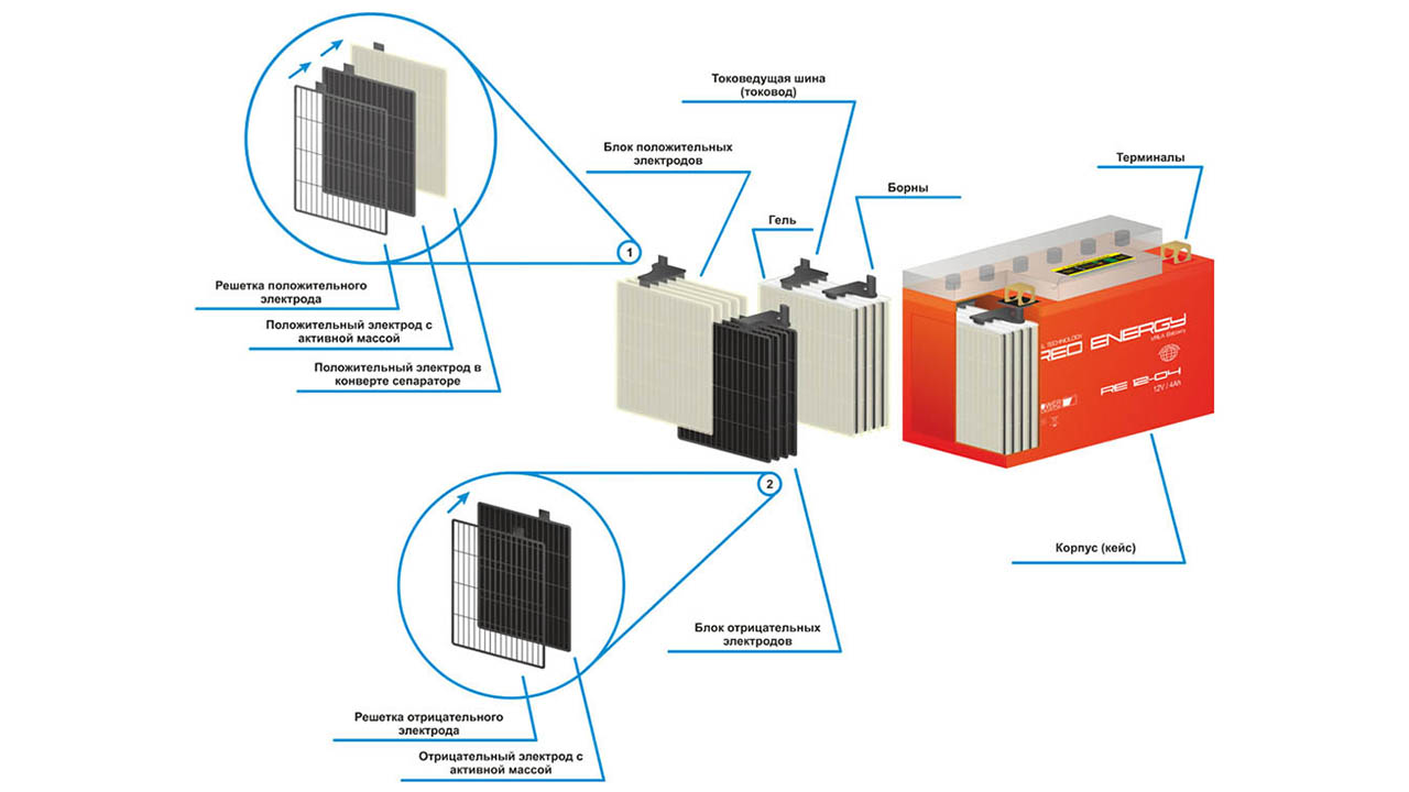 Аккумуляторные батареи RED ENERGY для мототехники изготовлены в соответствии c японским стандартом качества (JIS В 5302-2004) свинцово-кислотных АКБ по новой технологии с использованием гелевого электролита. В аккумуляторных батареях RED ENERGY электролит связан химическим соединением на основе оксида кремния, благодаря чему имеет однородную гелевую структуру. Применение гелевого композита в батареях нового поколения способствует значительному улучшению эксплуатационных качеств оборудования.